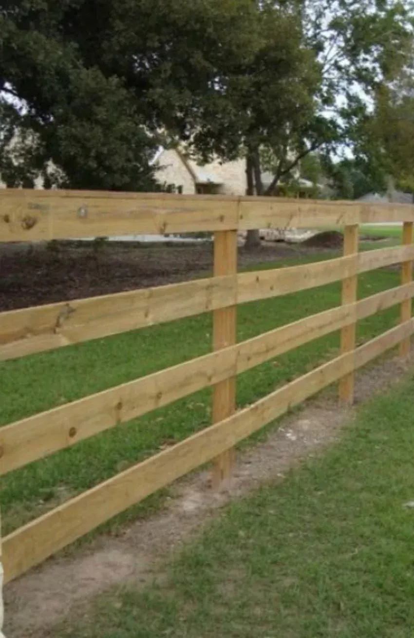 Our ranch style fences bring that authentic Texas countryside look to your property with 3-4 parallel horizontal wood rails—perfect for large lots, horse properties, or defining boundaries.